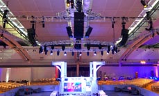VUE Delivers at Annual PCMA Meeting of Business Event Strategists From January 6 - 9, 2019, more than 4,000 business events strategists from 36 countries convened at the David L. Lawrence Convention Center in Pittsburgh, Pennsylvania for the annual PCMA "Convening Leaders" conference. In keeping with the conference theme, "Disrupt and Deliver" VUE Audiotechnik teamed with Pittsburgh-based Three Rivers Entertainment to deliver a world-class production experience that held the attendees' attention throughout the three-day event including a keynote presentation by tennis great and activist, Billie Jean King. "PCMA members are the best and brightest in the business event space and specialize in producing events that capture the mindshare of millions," explained Sara Elliott, Vue chief operating officer. "Given how high the production-quality bar was for their annual conference, it's an even greater honor to have provided the sound system that helped these leaders plan the memory-making events of tomorrow." The in-house AV and lighting provider for the convention center, Three Rivers, was tasked by PCMA to deliver a high-output, low-profile, 360-degree-coverage sound system for the 200'-square event space and center stage in-the-round. In fact, at 236,000-sq.-ft., the venue is the largest column-free exhibit space in the US and posed unique challenges with its floating roof system. And since the sound system shared the truss system with an extensive lighting rig, weight was a major consideration. Three Rivers' audio department head, Chuck Gilchrist, tapped R/T Audio owner and FOH engineer Rob Thomas to provide system design and engineering support. Thomas worked with PCMA organizers to ensure their production requirements were exceeded. After much deliberation between a 360-degree system and a more traditional left/right hang, Gilchrist and Thomas settled on an all-Vue 360-degree-coverage system consisting of four hangs of 6x al-8 sub-compact line array elements hung beneath 2x al-8sb subwoofers. Four additional arrays of 6x al-4 compact line array elements provided in-fill coverage while four dual 21" hs-221 ACM subwoofers beneath the stage provided additional low-end support. VueDrive Systems Engines provided class-D amplification along with zone control and onboard SystemVue networking. Vue network partner Access Audio provided cross-rental support to supplement existing Three Rivers and R/T Vue inventory. According to Thomas, Vue was the clear choice for the audio component of the event given the brand's sonic performance and weight-to-output ratio. "Vue's weight-to-output ratio and tonal consistency from array to array made it the ideal choice for this high-profile production. Packaging the al-8 and al-4 symmetry in the design was slick, alternating the in-fill with al-4s. The event planners wanted nothing on the floor so we looked to the al-8sb for extending the lows. But I couldn't resist sneaking the four hs-221's under the stage to keep it fun -- after all, the client wanted disruptive!" And from all accounts, the Vue system delivered on all fronts. Gilchrist commented, "I knew Rob Thomas and R/T Audio would bring their knowledge and superior products to help solve the rather difficult challenges posed by this event. And anyone who attended the event would confirm that he and Vue most definitely delivered." PCMA is the world's largest community for business events strategists providing senior education and networking for the business events sector. PCMA crafts and shares knowledge and market intelligence, enabling organizations to make informed business decisions while providing a platform for peer-to-peer exchange. Headquartered in Chicago, PCMA has 17 chapters throughout the U.S., Canada, and Mexico with members in more than 40 countries. For more info, visit www.pcma.org.
