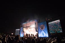 Bandit Lites Brightens Austin City Limits FestivalBandit Lites wrapped its final festival for the summer with two astounding weekends at the Austin City Limits Music Festival, where beautiful weather under the big Texas sky in Zilker Park was the setting to more than 130 acts. Bandit worked with C3 Presents to provide the festival lighting package for two of the main stages, giving headliners such as LCD Soundsystem, Mumford and Sons, and Kendrick Lamar the flexibility and versatility to seamlessly blend in their own touring looks. Seth Jackson, who is in his fourth year of designing the festival rigs for ACL, collaborated with the headlining artists in a three-fold process, by first providing a large enough rig to fit on the scale of the large roof structures. "Second, you need to provide familiar and varied fixtures," he continued. "Most of the lighting designers coming in have existing show files. You need a rig that allows them to clone or match fixtures from their normal rig. That makes for a better show and easier day for everyone. The third is to provide space for the headliner. Often they are using part of the festival rig and adding their own custom elements. We tend to stay fairly simple on the truss layout so that space is there for them. If you do 14 sticks of truss running up to down stage, you'll end up having to take a lot of it out every night to make room. Bandit supplied more than 250 fixtures for both the Honda and Samsung Stages including ETC Source Fours, Lycian M2 Spots, Philips Vari-Lite VL 3500 Spots, VL 3500 Washes, VL 3000 Spots, Claypaky Sharpys, Bandit's exclusive GRNLite Pars, Martin by Harman Atomic 3000 Strobes, and MA Lighting grandMA 2 Full consoles for control. "A little planning ahead at the Tetris game can go a long way," Jackson said. "Mostly it is the coordination between project manager Jimmy Hatten and Shawn Lear with our artist advance. Things like additional network lines are a simple thing, but if they get missed, it could be a show stopper." One major signature spectacle, the ACL Festival pyramid was comprised of 22 Syncrolite SXL's placed around the park, where 600' to 1,000' of strategically placed cable ran between each fixture. Bandit's crew for the weekends included Andy French, Jimmy Murray, Ty Veneziano, Chase Bosworth, Kam Finley, Hap Prater, Elizabeth Weller, and Shawn Worlow. Both Jackson and Bandit's client representative Lear attributed the success for a festival of this scale to the attention to detail of all the moving parts. "After three years, we have developed a great working system between myself, Bandit, and C3 Presents," said Jackson. "With so much information from so many artists flying back and forth, Bandit has been instrumental to our process of keeping it all organized." "The best part of working with C3 Presents is in the fact their employees are professional, knowledgeable, and fun," echoed Lear. "Production manager Brandon Sossamon's expertise, guidance, and wisdom in handling all facets of production is nothing short of amazing. Bandit Lites is privileged to be involved with C3's brilliant staff and crew that make Austin City Limits one the nation's top music festivals."