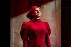 Theatre in Review: Mother Russia (Signature Theatre Company)When an actor, especially one as gifted as David Turner, is cast as an entire country, you can expect that scenes will be stolen. As, yes, the title character in Mother Russia, who represents the spirit of a nation, Turner enters, dressed entirely in red down to his neat little babushka, and seizes the stage with a vigor that calls to mind Napoleon taking Moscow. "I have been let down by so many shitty men," she begins, the voice of bitter experience. Living through several centuries of loss and betrayal, Mother Russia has seen it all. She mourns the failure of "Gorby," who didn't take her advice and lost control of glasnost. Ivan the Terrible, she concedes, "was not so bad." Then there's her professional nemesis, Olga Knipper, whom she insists, nabbed all the best roles at the Moscow Art Theatre by taking up permanent residence on Anton Chekhov's casting couch. Playwright Lauren Yee gives her a tour-de-force laundry list, ticking off the many rulers (and their wars) who devastated the country; it's a rant that devolves into a world salad of cultural signifiers ranging from Trotsky to Pussy Riot, detailing Russia's long downward slope. But don't worry about her: With her insolent vocal tone and permanently sour expression, Mother Russia is the ultimate survivor. Next to her, Mother Courage is a piker. You could probably write an entire play around this character, and maybe that's what Yee should have done. Instead, she came up with an often-silly buddy comedy set during the Boris Yeltsin era, when capitalism ran amok, and gang activity reduced the country's already low life expectancy. The sad sack pair driving the action consists of Dmitri, a "former aspiring KGB agent," turned shady dealer in various goods and services, and Evgeny, whose career as a Soviet apparatchik ended when "Marxist economics turned out to be largely incorrect. They don't need anyone to decide prices anymore. Now they just "let the market decide." Evgeny has been hired by his gangster father, who runs a protection racket, but his heart isn't in shaking down local merchants. The young men are a study in temperamental contrasts. "Now we're twenty-five, it's 1992, and we're free! The world is ours!" exults Dmitri. "The yawning abyss of tomorrow is before us," Evgeny notes. As it happens, Dmitri has a little surveillance business on the side, so Evgeny is engaged to keep tabs on Katya M, a former pop star, who defected to the US after her father, a noted radical poet, was taken away. Alas, life in America was a bust; her star waned next to the likes of Whitney Houston, and she even lost her political currency: "No one wanted to hear me sing 'Tear down that wall' once there was no wall left to tear," she laments. Evgeny, smitten with Katya and assuming Dmitri's name, uses his government contacts to discover who betrayed her father. Then he embroils her in a plot to steal a stash of government vouchers in a brazen redistribution-of-wealth plan. Never mind that the vouchers are possessed by Evgeny's corrupt dad, who plans to use them to corner the Russian oil industry. On film, Billy Wilder could have made a tantalizing farce out of such seamy materials. Onstage, Christopher Durang might have managed it. Yee's approach is surprisingly lightweight; sometimes Mother Russia is very funny, especially when Turner is holding forth. Other tasty bits include the disillusioning moment when Evgeny discovers that Katya's latest artistic project is recording the Russian version of the Folgers Coffee jingle ("The best part of waking up...") But the gags seem to come from second-rate comedy sketches: Dmitri wooing his girlfriend with gifts of live weasel; various sophomoric double entendres around the world "blow;" Dmitri's halting attempts at mastering American slang. ("I gotta put a rang on that fanger.") A bit, noting McDonald's entry into the Russian market, with Dmitri and Evgeny all but worshipping a Filet-o-Fish sandwich before mutually devouring it, goes way, way over the top. (This is probably the show's bellwether; if you find it hilarious, you'll probably enjoy Mother Russia.) In too many cases, the humor's sharp edges have been sanded off in the name of easy laughs. This is satire with false teeth. Teddy Bergman's direction doubles down on the script's flimsiest gags, including a spoof ballet sequence, but his cast is certainly enthusiastic. Steven Boyer infuses Dmitri with so much boyish energy that one wishes he had better material. Adam Chanler-Berat, with his mastery of hangdog looks, makes Evgeny into a most appealing loser. As Katya, Rebecca Naomi Jones is armed with some fabulously lethal looks, but the role is little more than a plot device, even in pained confrontations with her alarmingly pragmatic mother (also played by Turner). Like the play, the production has its droll aspects: The scenic collective dots has supplied a concrete structure with a roll-down facade, spanned on top by a Folgers advertisement; it has the right dilapidated look and the interior is amusingly packed with the inventory of Dmitri's business, including such tempting Western treats as Heinz ketchup, Coca-Cola, and Nestle's Quik. Stacey Derosier's lighting adds to the rundown atmosphere with stark fluorescent looks. Sophia Choi's costumes feature knockoffs of terrible eighties-era American sportswear, a choice that feels exactly right. Mikhail Fiksel's sound design wittily packs in the Ukrainian pop singer Ivan Dorn, Swan Lake and "Lara's Theme," from the film Dr. Zhivago, as well as machine guns, in the violent climax. That last scene illustrates the gulf between the play's dark subject matter and its often-giggly sense of humor. The latter is a feature of Yee's work, having, in earlier plays, taken a soft-pedal approach to Mao's Cultural Revolution and the horrors of the Khmer Rouge. She has a nose for rich material, but she never exploits it with total effectiveness; she especi