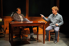 Theatre in Review: This Much I Know (59E59) This Much I Know begins with Lukesh, a psychology professor with a specialty in cognition, lecturing about the many ways, accurate and not, we process information -- or, as he puts it, "This is how we move through the world we make sense of things, even things there's no sense to be made of." He has plenty of material to work with. His wife, Natalya, flees their marriage without explanation, running off to Russia to unearth the truth behind her great-grandparents' deaths. Lukesh is approached by Harold, a student recently outed as the son of a Christian Nationalist leader, seeking an advisor for his thesis on H. G. Wells; the Anglo-Indian academic is soon tussling with the young man about the benefits of racial separation. Meanwhile, playwright Jonathan Spector, employing a time machine of his own, takes us back to the 1960s, introducing Svetlana Stalin, aka Svetlana Alliluyeva, aka Lana Peters, best-selling author, serial spouse, and, possibly, cagey keeper of her father's secrets. What links these storylines? Does anything? And what about the two auto accidents - or are they? -- embedded in the plot? One of Spector's minor characters, an elderly alcoholic former apparatchik, is fond of vast jigsaw puzzles. So is the playwright. From the get-go, everybody in This Much I Know grabs at truths that, all too often, crumble at the touch. Natalya is rattled at her participation in a fatal crash that, all agree, wasn't her fault: Still, she is tormented to think any number of trivial choices might have averted disaster. Meanwhile, her search for the truth about her ancestors, Soviet Jews possibly murdered by Stalin, sends her down an ever-deepening rabbit hole of rumor and speculation. Back on campus, Harold, raised by radical rightists yet attending a liberal university, struggles to link The Time Machine to theories of eugenics and racial purity, even as Lukesh's probing questions challenge everything he has been raised to believe. When not sparring with Harold, Lukesh is wracked with guilt, fearing that lecturing Natalya rather than comforting her may have permanently driven her away. Her occasional enigmatic texts provide the coldest of comfort. All this only scratches the surface of a narrative chockablock with twists, reversals, family secrets, mirror-image incidents, and actions taken with the best of intentions that have stunningly unpredictable consequences. The plot features two interracial marriages, two automotive deaths, and two children grappling with toxic inheritances from their ideologue fathers. One of them recants, unwittingly inciting a violent act; the other maintains a Mona Lisa smile, adding, enigmatically, "The less you know, the more certain you are." In this play, ain't that the truth. Suffice to say that This Much I Know is a veritable supermarket of ideas, not unlike one of Tom Stoppard's intellectual extravaganzas, with Spector, last season's Tony winner for Eureka Day, emerging from the current crop of playwrights as the brains of the organization. Just as Eureka Day seemed ripped from the headlines, This Much I Know has volumes to say to us living in a world shaped by conspiracy theories, fake news, and confirmation bias. "This is why false ideas can be dangerous," Lukesh says. "They're sticky. We are so desperate to make things connect." In a production from Washington, DC's Theater J, director Hayley Finn confidently weaves Spector's many plot threads, bolstering his argument about the perils of seeking meaning where, all appearances to the contrary, none exists. Finn deploys a trio of extraordinarily adept actors: As Lukesh, Firdous Bamji, a fine utility player in many New York productions, presides over the action with considerable wit and grace even as he fights to save his marriage. This may be his career-best performance to date. He is assisted by two fresh faces best known in the DC theatre community: Dani Stoller is equally arresting as Natalya, struggling with the competing concepts of causation and responsibility, and as Svetlana, maneuvered by history into an untenable position and keeping her own counsel as a matter of survival. Ethan J. Miller's Harold, caught between competing worldviews, is the nicest white supremacist you've ever met, a true innocent painfully processing facts that undermine his intellectual faith. He is also effective as a poker-faced Soviet bureaucrat and the vodka-soaked old coot who may (or may not) have the answers to Natalya's questions. The design team has found an effective way of wrangling this sprawling tale. Misha Kachman's classroom set gains in size when backlit, aided by a retractable platform that allows for quick scenic transitions. The upstage wall is a fine surface for Mona Kasra's projections of Santa Claus, the Tooth Fairy, babies, chessboards, and Russian vistas. (The creepy animated portraits of Stalin and Harold's father are an especially effective touch, as is the montage of paintings giving a riotously outsized account of Stalin's role in history.) Colin K. Bills' lighting reconfigures the space seamlessly, using sidelight to create alluring tableaux. Sarah O'Halloran's sound design includes some urgent musical passages relying heavily on strings. Danielle Preston's costumes allow the actors to switch roles in a second or less. To be sure, This Much I Know has its faults: Harold's plot trails off without a definitive conclusion, for example, and the scenes in which Lukesh incorporates his marital problems into his syllabus can feel strained. Nevertheless, this is a most stimulating event, the work of a playwright with real ambitions and the skills to realize them. On this point, we will brook no argument. --David Barbour