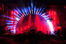 HSL Boosts Show-Stopping Prodigy Performance at SonisphereUK lighting and visuals rental company HSL supplied an extensive lighting specials package -- including 140 new Philips Showline Nitro LED strobes -- for the Prodigy's show-stopping headline performance on Friday night at Sonisphere 2014 in Knebworth Park. Show designer Andy Hurst has developed the latest spectacular look for the band who is playing a series of festival headliners and own shows throughout Europe across the summer, where they are maintaining their reputation for high production values and "epic visual and sonic experiences." Prodigy is also one of a handful of artists whose music and energy can rock the house with equal force at either a heavy metal or an EDM event. HSL is also supplying a standard "floor specials" lighting rig for the entire tour which is being used in conjunction with a festival / venue "house" rig at all gigs and which is built to Hurst's specification. HSL's project manager Mike Oates comments, "We love working with the Prodigy! They are one of the most innovative artists and put huge emphasis on 'the show,' while Andy's lighting and visual concepts are always fresh, exciting, and energizing." Sonisphere presented a great chance for HSL's new Nitro strobes to have a good workout as Hurst wanted a monumental effect to really offset the show, and HSL even bought some more RGB Nitros for the occasion. The fundamental Prodigy tour design is based on the "aircraft hangar" look that Hurst created for their high profile New Years' Eve show at London's O2 ... which the band loved. That was originally designed as a one off, so Hurst produced a tourable and adaptable version of the basic infrastructure -- six upstage / downstage finger trusses, complete with 60 Robe LEDBeam 100s and a large upstage arch rigged with 32 beam lights -- part of 68 on the spec'd rig -- which is sourced and provided locally, and then augmented with their touring lighting rig. The touring package features the band's striking Harrier jump jet backdrop upstage, plus eight floor-based upstage trussing towers which are wheeled on -- each rigged with two Robe LEDBeam 100s, two Nitro Color RGB strobes, four ColorBlock db4 MkIIs, and a Patten 2013 on the top. Then there is a small arch that frames Liam's keyboard hub and eight Robe Pointes rigged on top. Both parts of the rig concept are fully scalable and can be shrunk or expanded to fit the available stage space. "The most important thing to remember about designing a festival rig is to make it infinitely variable but retain its form and integrity. To ensure that we can have our show wherever we are playing took a lot of pre-planning, but that is all paying off when we get to site," confirms Hurst. Sonisphere was the first time that HSL's Nitro Strobes had been used for a full-on rock concert. They were arranged in three flown arrays either side of stage, taking advantage of their ability to be easily clipped together -- similar to constructing a flown PA. The units were built into drops of 10 and attached to steel wire rope ladders -- configured as four, two, and one by 10 respectively -- the longest on the outside, to mimic the shape of the arch. Hurst used a total of 56 Nitro RGB versions and the rest were white. It made massive impact in a classically strobe-tastic show which also included 28 Atomics dotted around the place. The whole field -- rammed full with an ecstatic audience -- was lit up in dramatic giant flashes and vivid explosions of color from the Nitros as the band brought the house down with an intense string of anthems like "Firestarter" and "Smack My Bitch Up" as well as material from their forthcoming new album. HSL also supplied additional smoke and haze machines to boost the already large amount of atmospherics, and other extras for this show included 14 Patten 2013s -- their distinctive retro look is another favorite with the band. HSL's top technicians Ian Stevens and Matt Brown ensured that everything ran like clockwork onstage for the Sonisphere, and Hurst operated the lighting using his own Road Hog Full Boar console. His mix included taking the director's cut of the IMAG into a Catalyst media server, treating and effecting it there, then returning the feed to the vision mixer for output to screens ... facilitating the crazy messed-up video aesthetic desired for the show to appear onscreen.