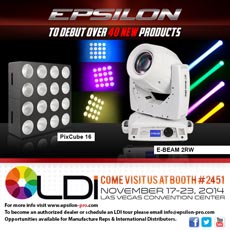 Epsilon to Debut Over 40 New Professional LED Lighting Products at LDI2014After their 2013 announcement of entering into the professional lighting market, The Epsilon Group of Companies; a 32-year-old company says that "they are ready to become the next leading manufacturer of professional lighting products for small to mid-size venues, club install and rentals." The Epsilon Group Company's general manager of lighting, Phillip Lentini, an industry veteran of 25 plus years, has been behind the scene solidifying relationships overseas with quality suppliers for LED lighting. The company says "Epsilon offers high quality lighting that delivers uncompromised performance and brightness at the most affordable prices." Epsilon will exhibit in booth 2451 at LDI2014 show in Las Vegas for hands-on demonstrations with over 450 of Epsilon-branded lighting fixtures will be on display and performing. In addition, they will show: • Wireless DMX and battery-powered fixtures • COB (Chip-on-Board) fixtures • Outdoor IP-rated fixtures • Pixel-mapping moving heads • Hi-Power CREE LED moving head beams including the first linear DUO Q-BEAM BAR with single cell control Expanding more than the product lines, the company says Lentini will be hiring seasoned independent sales firms in several vacant territories to assist in covering sales efforts and dealer network support. Job responsibilities will encompass: • Expand dealer network • Product training • Product demonstrations • Assist in acquiring and managing commercial projects For more information on becoming a dealer or a team member please contact Phil Lentini at 717-379-2275, or email, phil@epsilon-pro.com. Any media, or booth tour requests should be directed to Shannon Hartz at 401-206-8833 or shannon@epsilon-pro.com.