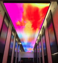 VER Partners with Electrosonic on LED Ceiling for Empire State Realty Trust's 250 West 57th Street LobbyEmpire State Realty Trust, Inc. (ESRT) recently renovated its commercial office building lobby at 250 West 57th Street in mid-town Manhattan. The new Gensler-designed lobby features an 80' x 8' art installation in the form of a High Definition LED screen on the lobby ceiling. The unique installation completes the transformation of the repositioned building lobby, which also includes a new entrance canopy, street frontage, and new elevator cabs modernized for the 21st century. The massive screen creates generative, customizable images and was composed by lighting artist Marc Brickman and award-winning video artist Lindsay Scoggins. The truly immersive experience evolves over a 24-hour cycle and is comprised of abstract art, live news feeds, galaxy depictions, and extreme weather. The technology utilized ensures that the same image will never reveal itself more than once. The uniqueness of the screen comes from behind-the-scenes algorithms that provide information in real time. Online sources, such as weather, hashtags, and trending topics, allow the video artwork's appearance to adjust daily. For example, if the screen is displaying sunrise the algorithms will correspond that image with real-time weather in New York City. As this input changes daily, the look of the video artwork will reflect those changes. VER partnered with Electrosonic to program the AV and control systems. The project demonstrated Electrosonic's comprehensive approach and intramural teamwork with AV system engineering done by its Orlando, Florida office, fabrication by the Burbank, California office, and testing and installation support by the New York City office. "The lobby of this almost 100 year-old building had had some facelifts, but we learned that this was its first full renovation," says Joe Viola, business development manager at VER. "ESRT wanted to blend art and technology in an elegant way, which can be hard to do especially in a classic, century-old building." ESRT owns, manages, operates, acquires, and repositions office and retail properties in Manhattan and the greater New York metropolitan area, including the iconic Empire State Building. "The project involved a lot of coordination, but with Electrosonic's partnership integration talent in key technical areas combined with their supportive approach to business made things much easier," Viola reports. "With Elecrosonic's focused and outstanding project management and their wide base of technical expertise we had an incredible team to navigate the course and to do it at a very high level." Driven by custom high-end media server PCs, Electrosonic's AV system provides razor-sharp UHD60 resolution images with VER's M8 Distribution Platform to 308 LED ceiling tiles each with 2.88mm pixel pitch. "The M8 is an exceptional product and very easy to work with," says Fred Davidowitz, Electrosonic project manager. A QSC Q-SYS Core digital signal processor, amplifier, and 16 speakers above the display supply audio throughout the lobby. DMX control cues from the media servers change the colors of lighting fixtures around the display to coordinate with the content. A Crestron control system, with custom GUI, was programmed by Davidowitz to provide flexible scheduling, override functions, health indicators, and emergency notifications for the AV devices. A Microsoft Surface Pro, displayed like a plaque at the front of the lobby, gives information about the installation and the artists. "Fred Davidowitz and Thursby Pierce at Electrosonic had a great deal of patience in helping us deal with the obstacles presented by the renovation of a high-traffic building, which was only accessible at night," says Viola. "Their cohesive team worked well together from coast to coast and was key for us being able to negotiate all facets of the project. Partnering with Electrosonic on this job was an amazing experience: Their professionalism, people, and technical depth in supporting our LED display systems allowed for a very successful one-of-a-kind project." Chris Johnson was the account executive for Electrosonic. Elliot Nyfield was the project engineer and Rob Tompkins was the site supervisor.