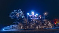 JAGUARA Comes to Life in Nevada Desert with Elation Cuepix 16 IP Sonic Design is an interdisciplinary team in Colombia that specializes in actualizing unique architectural projects and large events around the world. The creative team at Sonic Design recently designed and built a multi-sensory Art Car, JAGUARA, and incorporated Elation Professional Cuepix 16 IP LED matrix panels in the design to help spread its environmental message. JAGUARA is a collaborative project by an interdisciplinary collective of artists, designers, scientists, musicians, ancestral knowers, ecologists, communicators, teachers, technicians, and artisans from different areas of the American continent. Sonic Design's director, Leo Vilar, works throughout the world on projects that bring focus to Colombia and led the team that created the Art Car vehicle that portrays a jaguar emerging from the Amazon River. "Through this artful celebration of the jaguar, we want to raise awareness about the vulnerability of the main refuge of the jaguar, the Amazon Rainforest," Vilar explains. "JAGUARA is inspired by the symbolism and powerful spirit of the jaguar, which represents, for most ancestral American tribes, the connecting force between the world of gods and the world of men. In a time where our trends of living are disrupting the balance of our planet and threatening our existence, JAGUARA comes to remind us of the essence of living in balance." As director of design for JAGUARA, Vilar wanted to create an Art Car with a very unique character which would clearly portray the ancestral power of the Amazon rainforest and its vital role in preserving the balance of our global climate. "Many times technology pulls us away from nature but this project intends to work the other way around," he said. "Through a very thoughtfully crafted design, complemented by state-of-the-art lighting and sound technology, we wish to raise awareness about the vulnerability of our most precious life supporting systems and about the critical moment we are living in now." JAGUARA debuted August 26 - September 3 at Burning Man in the Black Rock Desert of Nevada. Burning Man, an annual gathering that explores various forms of artistic self-expression, embraces a special spirit in which a powerful community of conscientious people comes together to co-create a memorable life changing experience. A very unique and special team came together to share ideas and create JAGUARA in the spirit of Burning Man, including global social-impact organization PlayaSkool, led by Jon La Grace, a long-time member of the Burning Man community and key to the success of the project," Vilar says. During daylight hours, JAGUARA was a rainforest oasis of patterns, colors, and handcrafted art accompanied by sounds of nature, indigenous chants, and tribal beats. In conjunction with PlayaSkool, JAGUARA hosted talks by Colombian anthropologist Carlos CastaƱo Uribe about Chiribiquete National Park in the Amazon rainforest, recently declared by UNESCO as world heritage, and the cosmic maloka of the jaguar. At night, the Art Car became an electro Latin music party featuring DJs, musicians, and performances from the counter culture movement in South America. Projection, lasers, and other effects enhanced the multi-sensory experience, a colorful multi-texture jaguar head emerging from the Amazon River. Vilar served as director on the project and one of the many hats he wore was that of lighting designer. The key Elation fixture used in his design was 64 Cuepix 16 IP LED matrix panels used to re-create a traditional "jaguar man" figure, a symmetrical and schematic design placed center stage in the Art Car. The Cuepix 16 IP is a powerful 4x4 matrix LED panel with all-weather IP65 protection capable of projecting high-impact color or white light, eye candy, or pixel-mapped effects. Vilar first saw the fixture at the Prolight + Sound trade show in Frankfurt last April and says that besides the quality of the light itself, he thought the Cuepix 16 was a beautiful looking light. "It's a unique product," he said. "When I looked at the shape and design of the fixture, it looked like a sculpture and I thought it would be ideal for the JAGUARA project. It has nice pixels but it also looked nice as part of the jaguar man sculpture." The designer also chose the product because of its IP65 environmental protection. "We needed something robust and powerful and looked at many products before choosing," he said. "The Cuepix had to handle a tough environment and it proved to be a quality light that could stand the desert sand, heat, and rain." The Cuepix panels were used for colorful backlight as well as light onto the audience. The artwork that Vilar pixel-mapped across the Cuepix panels was inspired by traditional Colombian beaded Shaman bracelet designs. "Using Cuepix was a more artistic way to create pixels instead of the more typical LED screen," he said, adding that he ran the fixtures during the day but dimmed them all the way down to only 1% at night. JAGUARA debuted at Burning Man but is a concept that will continue to be communicated in different artistic manifestations. Vilar says the concept will subtly change as they work with local artists to take the project around the world. "The important thing is to bring the message of consciousness and awareness of nature to people. It's nice to do art with a purpose and we hope to inspire people from all over the world to join the conversation and become involved. There are many men and women who offer creative alternatives and have new visions for the world. JAGUARA wants to shine light on them and generate an echo for their positive actions." The JAGUARA project was well received by the Burning Man community, according to Vilar, and technically the designer says the project worked very well. "It was a great experience and we received just amazing feedback, nothing but great comments," he concludes.