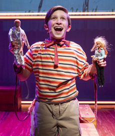 Theatre in Review: Fixing Frankie (Little Red Engine Theatre at ART/New York Theatres) Frankie Scordato doesn't need fixing so much as he could use a little fleshing out. Joe Langworth and Steve Marzullo's new musical is the story of a gay man's progress from wide-eyed youth to haunted middle age, remaining strangely anonymous over decades of social change. A lot happens around him, but, curiously, almost nothing sticks, largely because Frankie is such a blank. The authors, seeking to create a highly relatable everyman, have instead invented an empty vessel, passively looking on while his loved ones undergo all sorts of trials. He makes a distinctly odd central figure. We meet Frankie as a grade-schooler growing up among the stereotypes in New Jersey. His parents are loud, gesturing, kvetching Italian Americans. ("Finish your plate," his mother snaps. "There are children starving in Africa." Never heard that one before.) Then again, Frankie is hardly an original; with his fondness for dolls, his fashion-forward obsessions, and his idolization of Bea Arthur in her Maude period, he is a textbook sitcom gay-in-training. (Confirming his outsider status is a tasteless running gag about a medical condition resulting in only one dropped testicle.) As his father gruffly points out, "Face it. There's a pink elephant in the room." The issue only becomes more obvious when Frankie enters high school, where he bonds with Margaret, a big, boisterous good-time gal who wants to be a cabaret star. Barred from fashion school by his father, who doesn't want him hanging around with "poofs," he ends up at Hunter, where a feature he places in the college paper gets him a job as a restaurant reviewer in The Village Voice -- a career in which he displays an utter lack of interest. By now, it's the '80s, and Frankie is making the bar scene, cueing numbers in which guys in skimpy shirts eye him provocatively -- not that he seems to be having a good time. True love comes calling in the form of Walter, a dishy mergers-and-acquisitions specialist who eventually gets tired of playing second fiddle to Frankie and Margaret's Will and Grace-style pseudo marriage. (With the AIDS epidemic looming, Walter gets dispatched, thanks to a bizarre plot twist in which he appears to be the only homosexual in America who doesn't know about the HIV test.) Uninterested in outside relationships, Frankie and Margaret decide to have a baby -- "You'd be an amazing father!" she announces, based on no evidence whatsoever -- leading to a tragic (and soap operatic) twist outside a fertility clinic. Trust me; if you want to reach old age, you should give Frankie a wide berth. As Frankie, George Psomas, an attractive presence with a nice voice, wanders through the action, looking bemused, presumably giving directors Langworth and Michael Blatt what they want. But the character's total lack of introspection is off-putting. He has little or no social life, and his affair with Walter seems surprisingly one-sided. His devotion to Margaret is summed up when he says, "She was my person," but their relationship often seems a matter of convenience. Does he ever wonder why he can't be with a man long-term? Or why does he, given his major daddy issues, agree so flippantly to fatherhood? Longworth's book often struggles to find drama where none exists: The first act ends with a spat when Frankie takes Margaret to the famous club Limelight, upsetting her when he leaves with a guy. (This cues a rather wan first-act finale, "We All Love Who We Love.") But what did she think would happen? Anyway, Laura Pavles is charming as Margaret, happily evading some of the character's more pathetic qualities. Austin Colburn is an attention-getter both as the tragic Walter and as Frankie's younger, more politically committed Grindr date, who might be boyfriend material. Greyson Chapman has plenty of pizzazz as the young Frankie, begging the question of how he grows up to be such a dour adult. (There's a nifty bit in which Chapman hands over a backpack to Psomas, signaling the passage of the years.) Felicia Finley gives things a welcome jolt with each appearance as Sister Agatha, who presides over Frankie's school days with an iron rod, ultimately becoming the personification of his guilty conscience. The modest production features Josh Iacovelli's set design, dominated by screens that Andy Evan Cohen fills with images of Catholic schools, New York streets, and doctors' offices. Elizabeth Ektafaei's costumes, Aiden Berzark's lighting, and Sun Hee Kil's sound design are all solid. It's typical of the show that Frankie takes offense at one of his father's remarks ("Your sisters have their own families to worry about"), complaining, "Wait, just because I'm not married with kids means I don't have a family?" Well, by this point, Walter and Margaret are long gone, and, in the next scene, we find him in bed on Christmas Eve with a fellow he barely knows, so maybe Dad is onto something. (He has also quit his job, so he doesn't even have colleagues.) The musical attempts to answer the question of why Frankie needs fixing. The real question should be: Who is this guy, anyway? --David Barbour