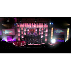 Pete's Big TVs on BET's Evening of Stars Pete's Big TVs recently outfitted multi-projection areas for the stage of the 33rd annual An Evening of Stars benefit for the United Negro College Fund. The show was taped in front of a live audience August 14 at the Pasadena Civic Center. It aired September 25 on the BET Network. Guy Benjamin, of Pete's Big TVs, said the company's role was to carry out the design by production designer Anton Goss to outfit four different projection areas of the set with gear, including Barco 20K and Barco 12K projectors, a Toshiba 6mm high resolution LED screen, and an Elation 20mm LED medium resolution video flex screen. Benjamin headed the crew of Matt Ellar and Jody Lane. Goss also worked with Pete's Big TVs on the MTV Woodie Awards this year. The production designer of many TV competition shows -- most recently NBC's The Voice -- applied his skill to this stage for the theme of "Educating Our Future." Joining him on this event was art director Dave Edwards and lighting designer Otis Howard. This year's design differed from the UNCF's past telethon shows since it first began airing in 1979. The new format followed in a musical variety show style. Video segments highlighted some of the students UNCF supports each year. This new format allowed UNCF to attract top stars, with hopes of increasing interest and support when it airs. Enlivening the stage with musical performances were Erykah Badu, Anthony Hamilton, Patti LaBelle, Jill Scott, Ledisi, Marsha Ambrosius, Estelle, Musiq Soulchild and Miguel. A string of TV and film celebs made special appearances as well.