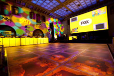 The Simpsons' 500th Episode Celebration With Holo-WallsHolo-Walls, LLC, developer of film and floor products, was recently asked to provide their liquid fusion products for the Fox Television Network's celebration of the 500th episode party of The Simpsons held recently in the Hollywood Roosevelt Hotel. The event, produced by Los Angeles-based Russell Harris Event Group, featured the company's "purple/orange" liquid fusion portable dance floor and eight of the new LED liquid fusion tabletops in the hotel's main ballroom. Over 1,200 guests attended including talent from the television series. The floor size was 24' x 27' and was surrounded by the battery-operated LED tabletops to complete the look and concept conceived by Fox executives and Russell Harris. "We are thrilled and honored to be trusted to provide these unique rental items for such a fun event," says Kevin McCarthy, president of Holo-Walls, "and the addition of our colorful, interactive liquid products were the hit of the party and very fitting for an animated television program like The Simpsons. We couldn't have been more excited to be involved in this milestone moment for the hit TV show."
