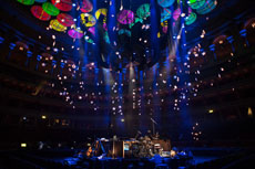 XL Creates a Sky Full of Video for ColdplayIn support of Coldplay's latest album "Ghost Stories," XL Video has supplied a state-of-the-art video solution for the televised album launch and worldwide promotional shows, culminating in two sold out shows at London's Royal Albert Hall. The visual concept for these shows was developed jointly by Ben Miles, Paul Normandale, Misty Buckley, and Phil Harvey. The shows were managed for XL Video by project managers Phil Mercer and Gareth Jeanne. In contrast to their Mylo Xyloto stadium shows, the performances for "Ghost Stories" called for an intimate ambience, bringing the audience closer to share the new songs. For the global album launch event at the Sony Pictures Studios in LA, XL Video was asked to create a planetarium-style 360 degree projection all around the space and across the entire celling above. To achieve this XL supplied 46 Panasonic PT-DZ21K projectors controlled by eight newly purchased AI I8 media servers (four live and four hot backup); the largest number of projectors XL have ever used on a single show. This very first album preview featured a small central stage and the majority of the projectors were positioned on the floor around the venue, feeding a total projection area equivalent to six 4K surfaces. The resulting show created an atmospheric visual spectacle. Against this backdrop, the band played the album in its entirety, together with a selection of their most popular hits. The promotional tour dates, which spanned four continents, were all supported with a core video package from XL that varied from gig to gig. Says Mercer, "The fluid and dynamic nature of these assorted promo events meant we often had to react to special requests at very short notice, which is always an exciting way to work! Some great teamwork and communication between our various international operations ensured that all expectations were met worldwide." The package, specified by Ben Miles, featured 6mm LED screens from XL Video in front of which Miles hung a BP screen made by Hangman to soften the appearance of the LED and make it more projection-esque. A Catalyst media server ran all the playback footage and six mini-cams which were fed into one of XL's new Roland V1600 mixer / switchers, chosen for its small size, flexibility, and power. The cameras were three Bradley Cam-ball 2 robotic units and three Gnat HD mini-cams, the latter more commonly used for medical and military applications and which XL Video has customized to make them tour-able. Both these types were specified for their small size because, for the original telecast, it was essential that they were discreet and virtually unnoticeable. Both also have a range of interchangeable lenses available and were dotted all over the stage, used for a variety of band close-ups and some more unusual angles on the instruments. One of the Bradleys was rigged on a fly bar to give the fantastic over-stage shots which were a key to Miles' "Ghost Stories" screen vision. The Bradleys were used for reverse shots of the band's guitar players when playing keyboards and synths and then in other positions to give an IMAG of the band's kit. The Gnats were positioned on various instruments including a self-playing piano, where the camera captured shots of the keys playing whilst Chris Martin was at the front of the stage. One was used for the Reactable -- an electronic musical instrument with a tabletop tangible user interface played by moving the tangibles around. The distinctive backlit display was highlighted by a Gnat on a stand immediately above to give the audience a visual insight into how the synthesised sounds were being produced. For the two sold-out Royal Albert Hall shows, Miles specified that the projections would cover the venue's iconic acoustic mushrooms. This was the first time that they had been mapped for a music show. Miles described the opportunity as "a bit of a no-brainer," and thought it would be an ideal and very cool way to continue the immersive projection thread from the album launch show. As that original gig was a TV show with an invited audience and therefore far more controlled, they were able to put projections in locations that would normally be out of bounds. When it came to the Albert Hall, a lot more lateral thinking was needed to find the best solution. XL supplied 16 Panasonic projectors for this, all offering 1920 x 1200 HD outputs and the images were again mapped using four of the latest AI S8 media servers (two live and two hot backup), chosen for their superior mapping capabilities and because each one offers 8HD SDI outs. The projectors were rigged in various upper level boxes and focused into the roof. Each one covered four to six mushrooms and the playback content used in Los Angeles was reformatted for the RAH shows. "It looked fantastic," says Miles adding, "It was great to be working with XL as always. A serious amount of hard work went into all the shows and the RAH in particular to get it looking as good as they did. All credit to Phil and Gareth and all the XL crew on site." In addition, XL supplied a Kayak switcher and PPU for Miles to cut the mix -- to which seven operated broadcast-quality Sony HXC-100s were added to the six minicam feeds, making it a 13 camera shoot. The operated units were dispersed around the RAH. Two custom-built 30' wide by 10' high IMAG screens were installed either side of the venue's famous organ, each fed by two more Panasonic projectors. Miles also had a Catalyst media server in line which he used to specifically treat the IMAG feeds, applying color, desaturation and for creating other "ghostly" style effects. XL also installed an extensive fiber system for control data which involved an enormous amount of cabling, the management of which was another element needing careful planning. Phil Johnson chiefed the 24 XL crew at the RAH. The team worked tirelessly under pressure to get the show on. Johnson also oversaw the projection in