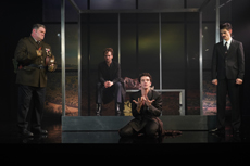 Theatre in Review: Richard II (Red Bull Theater/Astor Place Theatre) In Craig Baldwin's revival of William Shakespeare's most lyrical play, the title character is a man in a cage. Baldwin, who edited and rearranged bits of the original text, begins with Richard, incarcerated and stripped to his underwear, delivering a speech that usually turns up in the play's fifth act: In his end is his beginning, as T. S. Eliot might have noted. Here, the action of Richard II is filtered through the monarch's mind; he is omnipresent, if often invisible, looking on at the swirl of intrigue that undermines, and, finally, guts, his corrupt, pleasure-loving court. Indeed, the production's singular quality is the stark contrast between Shakespeare's elevated language and the sordid details of Richard's reign. The unapologetically gay monarch runs around dance clubs (Annie Lennox on the sound system) and bathhouses with the sycophants Bushy, Bagot, and Green. ("The caterpillars of the commonwealth/Which I have sworn to weed and pluck away," grumbles Bolingbroke, soon to be the usurper Henry IV.) Richard's queen is the gang's mascot, hanging out with boys in various states of undress, watching idly while her husband makes out with one of his lovers. Cocaine will be ingested. Many actors lend Richard a gay subtext, to a greater or lesser degree, but Michael Urie embraces it fully, a decision that makes his grasp on power seem even more fragile than usual. Manifestly unfit for the throne, he tries on and discards personas as if they were new ensembles, toying with the roles of peacemaker, despot, and cast-off king, among many others. Commenting on his shifting fortunes, he notes, "Thus play I in one person many people/And none contented: sometimes am I king/Then treasons make me wish myself a beggar/And so I am: then crushing penury Persuades me I was better when a king." Indeed, the loss of his crown is psychologically destabilizing, depriving him of the only role he knows to play, however uncomfortably. Throughout, despite a certain overfondness for gesticulating, Urie subtly probes Shakespeare's verse for multiple layers of meaning. Even at his most foolish, he retains a surprising innocence about the scheming that brings him down; the stunned silence with which he receives his ultimate betrayal -- agreeing to hand over the crown, he finds himself accused of crimes against the state -- is deeply eloquent. Presiding awkwardly over a game of Russian roulette played by aristocratic rivals, tensely trying to maintain the peace by revoking the banishment of Bolingbroke, and, deposed, quietly taking the measure of his prison walls, he is a man out of time, unsuited to the role life has dealt him, yet possessed of no other reason for being. Tragedy gives him a statue denied him in life: "You may my glories and my state depose/But not my griefs; still am I king of those," he says. Best known as an accomplished clown, this production should point Urie toward many other roles in the classic repertory. Baldwin's production has the advantages of clarity and pace, making the most of Shakespeare's level gaze at the machinations of power. By hinting that Richard's enemies are motivated in part by homophobia, they are cast in an even more sinister light than usual. Trying to stabilize the country's government, they are paving the way for the unstable world of the Henry IV plays, marked by rampant rebellions and questions of legitimacy. As usual, the playwright refuses to comment: This is the way the world works, he seems to say; make of it what you will. Baldwin's production also has its unstable aspects. Arnulfo Maldonado's set design, which places a transparent cube on a turntable at center stage, is visually striking, and it supports the concept of Richard recalling his downfall from a prison cell. (There's also a great moment when the upstage wall is illuminated, becoming the green and pleasant fields of England.) But the cube takes up too much space on the small Astor Place stage, resulting in some awkwardly overcrowded stage pictures. It also may create acoustic problems, which would explain why the actors are miked in such a small theatre. (In some scenes, actors stripped to their skivvies look mighty strange with receivers creating bulges in their briefs, and wires crawling up their backs.) Also, the supporting cast isn't always up to snuff. Lux Pascal's Queen chops up the verse, wounding its rhythm and sense. Emily Swallow's Northumberland feels strangely noncommittal. A comic sequence, featuring Jimmy Seol and Sarin Monae West as a pair of caustic, gossipy gardeners, falls flat. Then again, Grantham Coleman's cagey Bolingbroke, biding his time until the right moment to strike, is a definite asset, as is Kathryn Meisle's Duchess of York, up to her neck in intrigue and worried sick about it. Ron Canada's John of Gaunt is a bit over the top, but he certainly makes an impression, especially when foretelling Richard's fate. ("His rash fierce blaze of riot cannot last/For violent fires soon burn out themselves.") Canada is also fine as the Bishop of Carlisle, one of Richard's few friends at the end. Also, Jeanette Oi-Suk Yew's lighting, relying heavily on strategically placed LED bars, is sensational, creating a noirish, seedy atmosphere suitable for deal-making and double-crosses. Rodrigo Munoz's costumes, aided by Bobbie Zlotnik's wig and hair designs, call up a world of intentionally trashy '80s couture. If we must have sound reinforcement, Brandon Wolcott handles it discreetly, and his effects are well-done. And there are some of the most gorgeous speeches ever wrote, lovingly handled here, including John of Gaunt's ode to England ("This sceptered isle/This earth of majesty, this seat of Mars/This other Eden, demi-paradise...") and Richard's heartbreaking capitulation ("For God's sake let us sit upon the ground/And tell sad stories of the death of kings..."). In loss, Richard is unforgettably schooled in the world'