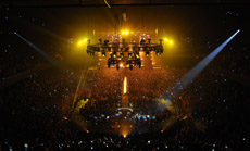 TAIT Delivers a Complex Strobe/Mirror Assembly and Flying Rig for Beyoncé's Worldwide TourThe highly-anticipated Mrs. Carter Show world tour began last week in Belgrade, Serbia, with Beyoncé delivering as dynamic a performance as ever imaginable. Set designer, LeRoy Bennett, was at the helm of the show's visual display, which ranged from incredible light displays to performer flying and pyro effects. Working closely with Alex Miasnikof and Malcolm Weldon, production managers for the tour, TAIT combined optimized rental assets with custom elements to deliver a complete staging solution. Following opening night, Miasnikof stated, "No matter how complicated or crazy the project, TAIT will come up with a solution. They have a team of great people that will support your efforts in all aspects, from paper to show; no matter where in the world it might be." The rolling mainstage includes a flaggapault lift, retractable dance bar, band risers, duck blinds, propane bars, pantograph stairs, Austrians, Kabukis, Sniffers, and fanzone decking with custom handrails. TAIT's patented mag deck system provides efficiency and ease of assembly. Unique in its function, a polished, aluminium dance bar was integrated into the set and rises up onto the stage for performer use. Adding to the array of effects, five propane bar decks, with grating on the top, ignite in flames as the artist performs "Naughty Girl." TAIT also crafted the framework for one of the key mainstage elements; a striking strobe and mirror structure measuring 7.3m x 18.2m and made up of five alternating columns of strobes and automated mirrors intermixed with six light ladders. The fixtures were provided by Upstaging. TAIT faced and met several design challenges in creating the frame assemblies, which required meticulous engineering and precise alignment to ensure that each light would reflect on its corresponding mirror within the column. Providing one of the most thrilling moments of the show, TAIT uses a flying rig, made up of three T-winches with two axes of motion, to elevate the artist from the mainstage to the B-stage. The element is controlled by TAIT/FTSI's renowned Navigator Control System and features a custom foot plate for performer comfort and safety. The B-Stage includes two U-shaped walkways, measuring 1.2m and 1.8m, respectively, in height. The walkways are connected by custom retracting stairs, which provide a unique performance area and wide range of motion for the artist. TAIT incorporated a radial panel of video into the center deck for added visual interest. As the artist performs, a fan situated beneath the stage surface creates a subtle, windblown effect. The center deck also features modified grating for performer stability. The tour demonstrates TAIT's proven ability to deliver a cohesive set concept that features both innovative design and incredible automation effects.