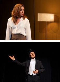 Theatre in Review: Let's Love! (Atlantic Theater Company)/Dreadful Episodes (59E59) We've had a run on short-form theatre this week, with two attractions that combine playlets and/or vignettes with musical interludes. I hate to use the "R" word; let's call them revue-adjacent. In each case, such flexible formats provide plenty of latitude for the expression of distinct sensibilities, although with varying (to put it mildly) results. "I could wallop you with my breasts. You'd see stars," says the character known as The Broad in Let's Love! This happens to be one of the milder statements made in an evening that often confuses coarseness with hilarity. As it happens, this piece, "The Broad at the Bar," is the most entertaining of Ethan Coen's triptych of scenes from the war between men and women. It consists of little more than dueling monologues by two drinkers, one male and one female: The Broad, played by an unrecognizable Mary McCann (sporting an aggressive wig), has a lyrical way with dirty talk. Recalling her affair with a ballplayer of note, she says, "I had that man's penis sittin' up doin' tricks. I had that thing reciting the Latin mass -- never mind Vatican II. I had that thing yodeling in the canyon." That's colorful writing, to be sure, and the Vatican II reference is a masterstroke. Indeed, The Broad has the Vatican on the brain; opining on Roman Catholic sexual ethics, she announces, "The pope should grab a chair, swing a leg over, light himself a Kent cigarette, and say, 'There's sex -- and then there's me. And folks, let's think why.' Make it human. Fireside chat. Glass a scotch, maybe. Or, creme de menthe-he is the pontiff." Dion Graham, as the man on the next stool, doesn't get such colorful writing, but "The Broad at the Bar" is a tasty, if slight, offering that calls to mind the early David Mamet. But the bulk of Let's Love! Is taken up with "Dark Eyes," which focuses on a romantic quadrangle consisting of the vengeful Susan; her weaselly ex, Dan; Faye, Dan's younger, ulterior, and domineering, girlfriend; and Tough, the hitman Susan hires to rough up Dan. (Susan, negotiating Tough's fee, drives the price down, sweetening the deal with a menu of sexual favors. Or, as she puts it, "I'll fuck you like you have never been fucked. You'll have some beautiful memories." When he demurs, she wonders, "What're you, a faggot?" And she wonders why she has man problems.) The sketch is little more than a more explicit example of the sex comedy style that prevailed into the 1970s, when the old genres were dying out and playwrights turned to shock tactics: The script is packed with vulgar punchlines, most of them about vaginal and anal penetration, plus mechanical twists designed to get easy laughs. Cohen lands them on occasion, but the entire enterprise is seedy and dispiriting. The best thing about "Dark Eyes" is that it shows off Aubrey Plaza's ruthless way with a zinger, so let's hope she turns up soon in something more commensurate with her skills. Noah Robbins appears at the end of "Dark Eyes" as Susan's potential suitor from Jdate, only to learn that she isn't Jewish, preferring to troll the site for one-night stands. In her twisted logic, Jewish men looking for a wife won't be interested in a relationship with her, but, since she has them in her apartment anyway, why not a quick bedroom romp? It's a less-than-perfect ending to a lazy, shapeless piece of writing. Robbins also appears in the title piece, about a pair of innocents on a date. (How innocent? The young woman still collects stuffed animals and is proud of it.) Such sweetness and light cannot last, however, once Robbins, suffering from a massive case of food poisoning, delivers the longest act of onstage vomiting that I can recall. It mostly unfolds out of sight, but the sound effects are appallingly vivid. Rest assured that director Neil Pepe isn't afraid to milk this gag for all it is worth, and then some. At least this sketch ends happily, once Robbins has dried off. The interstitial songs, delivered by Nellie McKay, provide some comfort, as do turns by Chris Bauer (Tough), CJ Wilson (Dan), and Mary Wiseman (Faye). Riccardo Hernandez's set, with its multiple turntables, keeps things moving, and Peggy Schnitzer's costumes, Reza Behjat's lighting, and David Van Tieghem's sound design are all solidly professional contributions. Still, what is the point of such ugly, dated nonsense? The Atlantic has been loyal to Coen for many years, but really, shouldn't this fine company dedicate itself to material on a higher plane than, say, There's a Girl in My Soup? In contrast to the crudities of Let's Love, everyone involved in Dreadful Episodes operates, delightfully, by inference. It's a product of Washington, DC's Happenstance Theatre Company, whose members are devoted to evoking various aesthetic sensibilities; this is a tribute to the illustrator and humorist Edward Gorey, whose slim adult storybooks call up a universe of misfortune and hinted-at depravities. Over the years, direct adaptations like Gorey Stories, Amphigorey, and The Gorey Details have come and gone, attracting little notice. The Happenstance crowd takes a different approach, using original, school-of-Gorey material to amusingly macabre effect. The tone is set by Mark Jaster, a bald, diminutive, imp from the underworld, with eyes like a pair of moons. Impeccably mannered, he announces, with regret, that, after last night's unfortunate events, "Sindbad, the Self-Impaler," will not be appearing at this performance. Nevertheless, we are assured, our seats have been "thoroughly cleaned." A pianist (Stephanie Baird) enters and eyes us with the cool precision of an internist looking for signs of morbidity. A Victorian maid (Gwen Grastorf) crosses the stage in stately fashion, staring with a shy smile gradually infused with a creeping dread. If anyone were to open a School of Insinuating Looks, this company could easily constitute the faculty. The episodes that fo