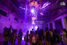 Claypaky Fixtures Chosen for Banyan Tree Installation at Immersive Sixth Sense Festival in India A large complement of Claypaky lighting fixtures was featured in The Banyan Tree installation at Bangalore, India's Sixth Sense Festival produced by Swordfish Events & Entertainment Pvt. Ltd. The array of Claypaky products included Tambora Flashes and Battens, Panify 2 motorized lighting platforms, B-EYE K15s, Valero Waves, and Sharpy X Frames. The venue for the multi-day festival was a century-old glass factory, a unique backdrop for launching India's first and largest multidisciplinary immersive experience. The Banyan Tree, a site-specific installation by production designer Stephen Bontly, presented a story of mutual relationships and symbiosis between elements. It was formed from the elements that we have adopted into our identity: windows, mirrors, lights, smoke and lasers. The stylized high-tech tree fused light, sound, and technology inviting visitors to step inside and watch the environment come alive around them. Known as The King of Trees and an important symbol in Indian culture, The Banyan Tree "was an interactive art piece that became a stage backdrop during live events surrounding the exhibition," Bontly explains. Lasers around the tree's perimeter connected to the core made of mirrors, prisms, and glass. Using lidars people interacted with the space: mirror and light panels moved, LED screens activated, lasers bounced and smoke created atmosphere. "I used lidar sensors to track the audience; they were placed around the room to trigger sounds and voice messages. The audio then communicated to software I built to trigger lighting effects throughout the tree," Bontly says. "The piece was actually controlled by the visitors, and no one moment was the same during the interactive show. In between, a timecoded story highlighted all the features on the tree just to make sure everyone got to see its full potential. I couldn't let it stop there, The Banyan Tree was also able to switch into live mode giving the control to my team and I during the live performances." He chose a wide array of Claypaky fixtures for their looks and functions. Eighteen Tambora Flashes featured in the core of the tree filling the need for larger bulb, short bar fixtures. "Even running them at 5% they delivered quality color," Bontly points out. Eight Tambora Battens encircled the tree. "I was more interested in getting the tight beams from the longer bars than their uniform tilt," he notes. Panify 2 motorized lighting platforms held clusters of prisms into which Bontly shot lasers. "The tree was actually two parts: a flown element that was the tree canopy and top of the trunk plus a ground-supported trunk," he explains. "This allowed me to stack the Panifys vertically, facing one another" using a custom steel plate Bontly designed. Four Panifys created the tree canopy and two were positioned in the trunk. The second trunk fixture had encircling glass panels. "With total control of the direction of the prisms, we had a lot of fun just spinning them around and redirecting beams of light," he recalls. Five B-EYE K15s were aligned in the trunk, two facing up and three down from the canopy. "With the washes' zoom set to 0%, they lit up the center quite well and did wonders for chase effects," says Bontly. "The two closest to the center illuminated the Panify elements so well -- they were honestly the two most important lights of the piece. These core lights really illuminated the structure of the piece, which was important for the overall concept." Four more K15s were installed on the ground for concerts. "During the shows, we really got into the pixel engine on the K15s, giving us another level of detail not easily obtained with simpler fixtures," he adds. Six Valero Waves were also ground mounted for live performances. The 36 X Frames were symbolic as much as they were an atomspheric choice. As it related to the Banyan Tree concept it symbolized the roots that drop down from the branches. In the interactive output, when people would approach the area, they would illuminate the floor beneath. As far as the look, i always love the uniform grid arrays over a large space. It really makes the space super dynamic and fun, running chases across a warehouse will never get old, especially from the dance floor. Bontly notes that the Tambora product line color matched quite easily, while the K15s "fell in line with the Tamboras with almost zero difference. We landed on a good, synchronized look." With the Panifys acting as an accent feature "for the big moments -- all the lights out, fog on, lasers at the core, Panifys spinning -- it was truly something to see." Bontly relied on the Mumbai production company Light N Light and Sahil Phodkar for support, but he reports that "the Claypaky fixtures worked flawlessly." He credits Swordfish and Bharath Muniram, his production manager, for "holding the project together and funding the dream. I could not have done it without these teams. We built [the installation] for three weeks, and they kept it maintained for another ten days."