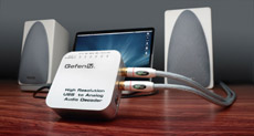 Gefen's New High Resolution USB to Audio Decoder Outputs Analog and Digital Audio from Any ComputerConnectivity solutions provider Gefen announces a new solution that the company says promises the highest quality audio possible when using digital audio from a computer as the source. "The new GefenTV High Resolution USB to Audio Decoder supports resolutions up to 192k so it is ideal for anyone who wants high-fidelity sound coming from a computer-based audio source like iTunes, Pandora, or Rhapsody," said Hagai Gefen, president, Gefen. "It also eliminates the static and noise that you typically hear when decoding analog audio to digital audio using the traditional analog audio format." The GefenTV High Resolution USB to Audio Decoder has a tiny footprint, ideal for in-room applications. It sits between the USB port of the computer or laptop and a two-channel amplifier and speakers. Audio is output as digital (optical), analog (L/R), or via the headphone jack. The technology used in the USB to Audio Decoder includes a digital interpolation filter and a high-quality digital to analog (DAC) converter to enhance performance.