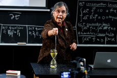 Theatre in Review: Rheology (Playwrights Horizons) Bulbul Chakraborty is an exceptionally indulgent mother, almost recklessly so. This accomplished physicist has not only signed up to collaborate with her son, Shayok Misha Chowdhury, on a play starring them, but she has agreed to be killed off onstage. Repeatedly. As an act of self-soothing. It's an endeavor that would make Sigmund Freud clear his throat, with emphasis. Rheology (a production of The Bushwick Starr, HERE Arts Center, and Ma-Yi Theater Company) begins with a physics lecture, complete with chalkboard and visual aids. (Fair enough: The Peter Jay Sharp Theater, upstairs at Playwrights Horizons, looks like a classroom; every time I enter, I feel like I'm back in Algebra I.) Bulbul, a natural performer, gives a talk on sand, which, intriguingly, has multiple physical properties: The individual grains are solids, but, falling into a vessel, they assume its shape, as do liquids. Then again, pour sand grains through an hourglass and, landing on a flat surface, they make a shape of their own. What to make of this? Such considerations lead Bulbul to invoke the enchanting term "capricious matter," which, she notes, is "a baffling phenomenon because...unlike regular solids, granular solids, jammed solids, or fragile solids, like sand dunes, are created by external forces. Thanks to her lucid, almost luminous, presentation, physics acquires an immediacy one never knew it possessed. (Seeing it one night after the Broadway revival of Proof, with everyone kvelling over mathematical equations, I was cruelly forced to face my STEM ignorance. Maybe that English degree was a folly, after all.) During her talk, however, Bulbul has a coughing jag so convincing that, at the performance I attended, someone in the audience called for help. It is a total fake-out: This is when the Chowdhury, known colloquially as Misha, pops up and explains: "I've always had a pretty acute phobia of my mother's death. Before we started this process together, I would have had a hard time even saying...'My mother's death'." He adds, "The only way I've ever been able to let the thought of her dying even cross my mind is by saying to myself, okay...if you were to die, I would just...die too." Thus, he plans to envision her final exit theatrically, to master the dreaded event before it happens. Lest you expect that Misha is suffering from some sort of Norman Bates fixation, I must add that the idea is largely Bulbul's. A scientist to her fingertips, skeptical of her son's overemotional fears, she has suggested that, as an experiment, Misha should stage her death scene, then collect evidence noting his reaction. It's simple: Having posed the hypothesis that he can't live without her, the only thing to do is to put it to the test. It's a hell of a way to prove a point. This proposition leads to passages that occasionally amuse and more often discomfit. A nuts-and-bolts wrangle about the correct way of expiring on an office chair will be familiar to anyone who has ever seen a play in rehearsal. (Bulbul shamelessly hams it up to express an opinion about Misha's direction.) Putting Bulbul on a table and wrapping his head in a scarf, Misha carries on hysterically, like a widow seeing her beloved on a funeral pyre. The scene that follows, performed in Bengali, with English surtitles, is pure Bollywood melodrama. "I will die with you," Misha moans. "We will burn together. I will bid farewell to my long, flowing locks. [Misha is bald, by the way.] Even as Bulbul tries to talk some sense into Misha, he derides himself: "You're right. I'm too dramatic. Who could ever love a boy like me? I will die alone and unloved." Alarmed, Bulbul responds, "Many men will touch you! Many, many men!" All right; that made me laugh, as did Misha's pledge to carry on his mother's work: "I will never rest until I find a rigorous stress-only theory of granular elasticity!" What greater promise can a son offer? More disconcerting is the sight of the forty-one-year-old Misha, in a child's pajamas, playing in a sandbox. Slowly, he unearths Bulbul's skeleton, carries it to the table, lies down beside it, and sucks his thumb. It was then that I began to speculate: If, thirty years ago, Bulbul had sent Misha to bed without his supper once or twice, would any of us be sitting in the Peter Jay Sharp Theater these nights? More than anything I've seen this season, Rheology functions as a Rorschach blot: Whether you find these mother-son edge-of-the-grave antics to be slyly amusing or distasteful and macabre will be entirely up to you. (It will probably say something about your upbringing, too.) Certainly, both stars give committed performances, and the production design is well-suited to the play's needs. Krit Robinson's classroom-lab setting nicely accommodates the action, and so seamless is the melding of the other elements that I could never tell if the lighting, by Mextly Couzin and Masha Tsimring, or the video, by Kameron Neal, was responsible for making the figures on the upstage chalkboard change colors and come to life. Whoever does it, it's a nifty trick. Neal also provides photos of mother and son from long ago, a gripping video of a sand lizard making its way underground, and images of Bulbul's mother when young, a century ago. Tei Blow's sound design combines well-done effects with discreet amplification. Enver Chakartash dresses the actors appropriately. Other key elements include the poetry of Rabindranath Tagore and a clinical dissection of the process by which the body shuts down after death, which is gorgeously written even as it pushes the production in a morbid direction. It's entirely possible to be affected by Bulbul's elegant argument that the movements of sand, as described in the opening scene, are an apt metaphor for the way in which grief moves through us physically, filling us with a deep sadness that we somehow manage to accommodate, making it part of our blood and bones. (In a sense